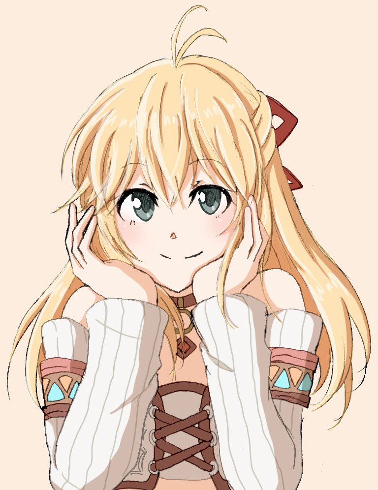 1girl blonde_hair chobi0521 closed_mouth detached_sleeves facing_viewer fiora_(xenoblade) green_eyes jewelry long_hair looking_at_viewer simple_background smile solo xenoblade_chronicles_(series) xenoblade_chronicles_1