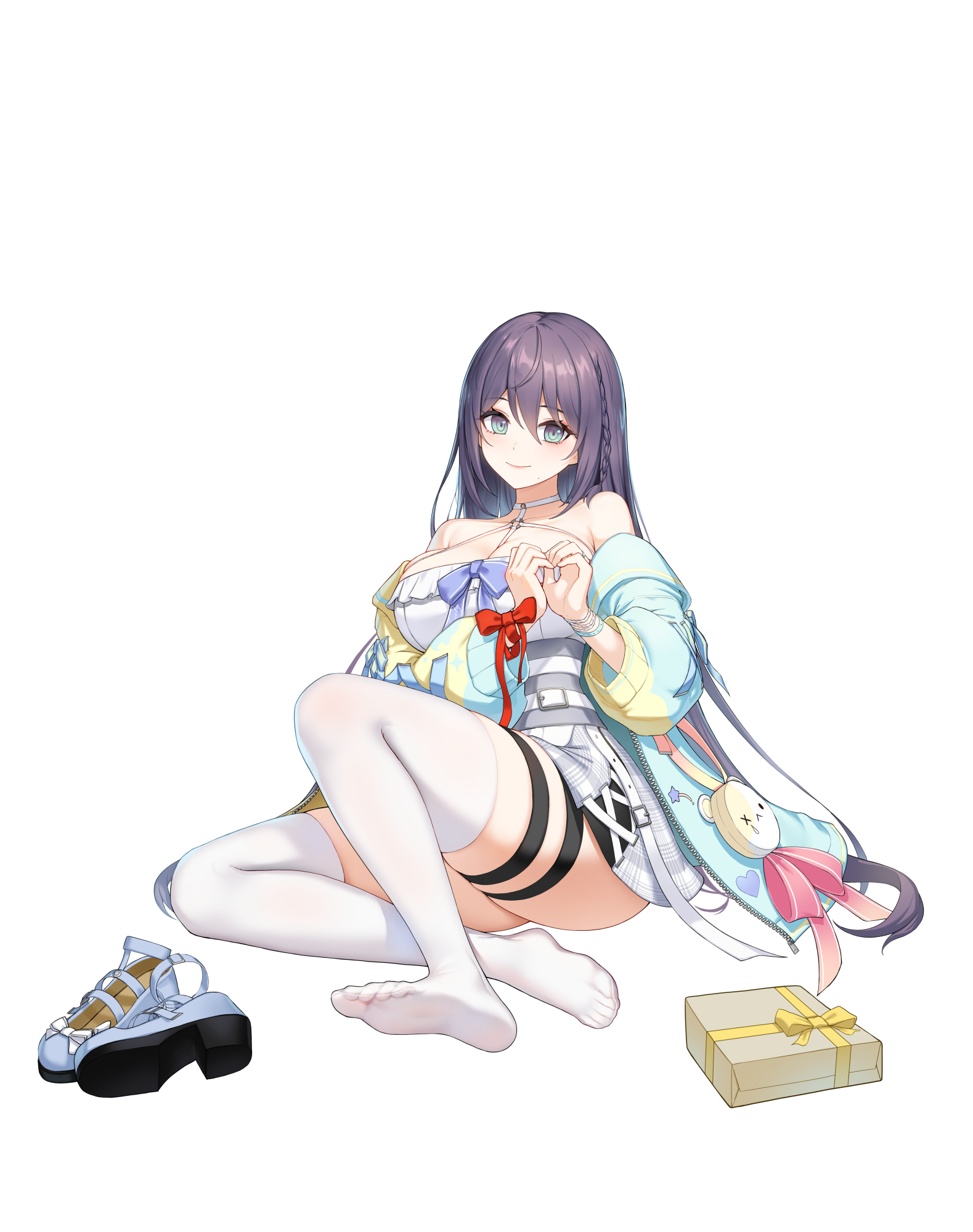 aeri_(closers) aqua_eyes closers eyeliner gradient_eyes highres long_hair makeup mole mole_under_mouth multicolored_eyes non-web_source off_shoulder official_art pink_eyeliner purple_eyes purple_hair