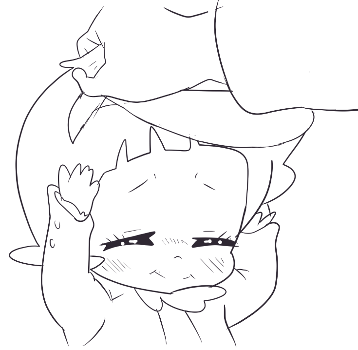 1girl archived_source blush bonnet closed_eyes derivative_work drawfag hands_up happy hat headpat long_sleeves nintendo pokemon pokemon_sv poppy_(pokemon) smile