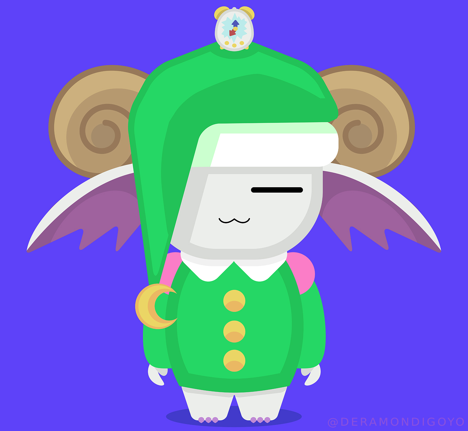 appmon crescent_moon digimon highres horns long_ears moon pajamas sleepmon