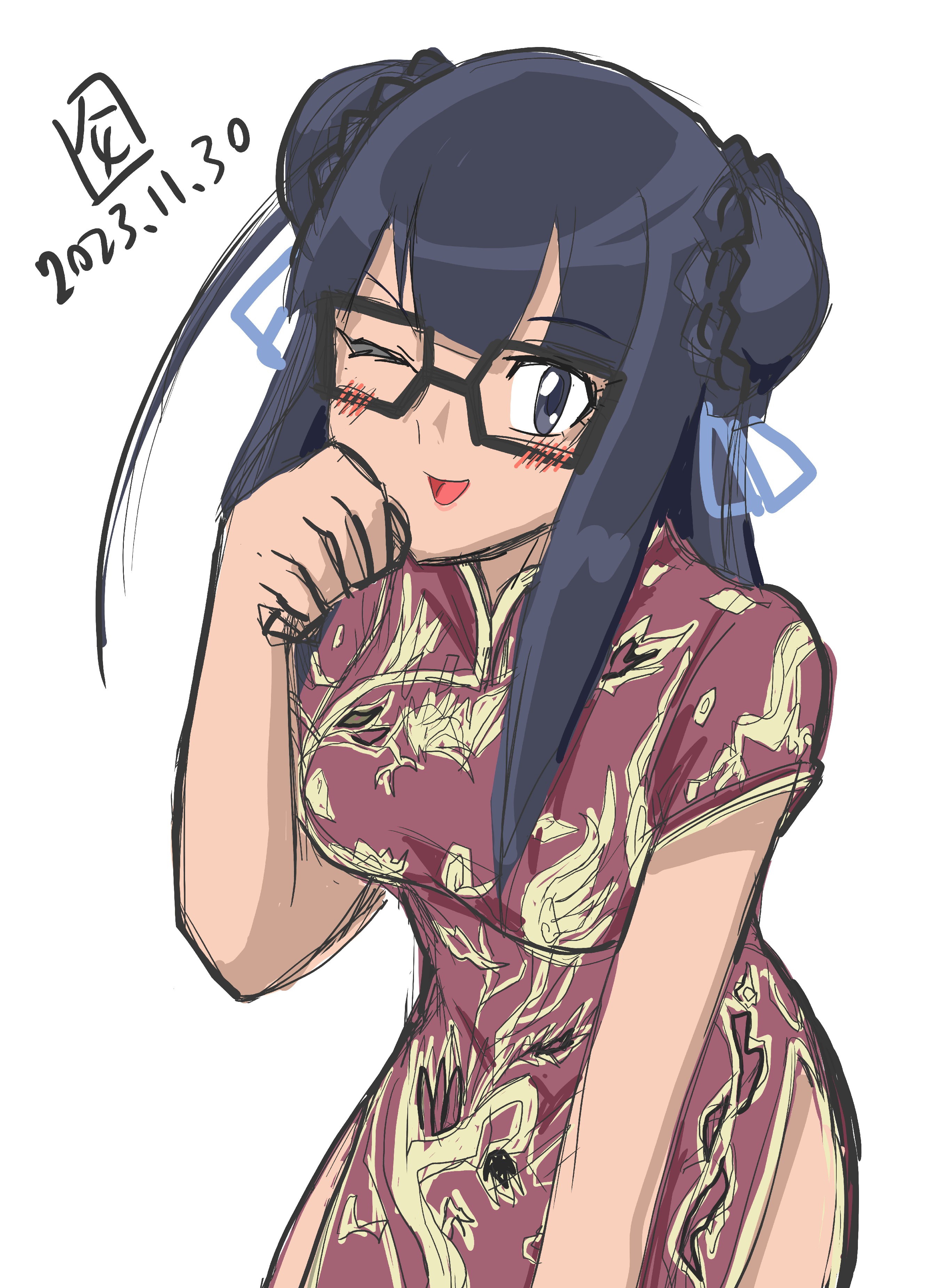 1girl absurdres black_eyes black_hair chinese_clothes digimon female_focus glasses highres long_hair mochizuki_meiko solo