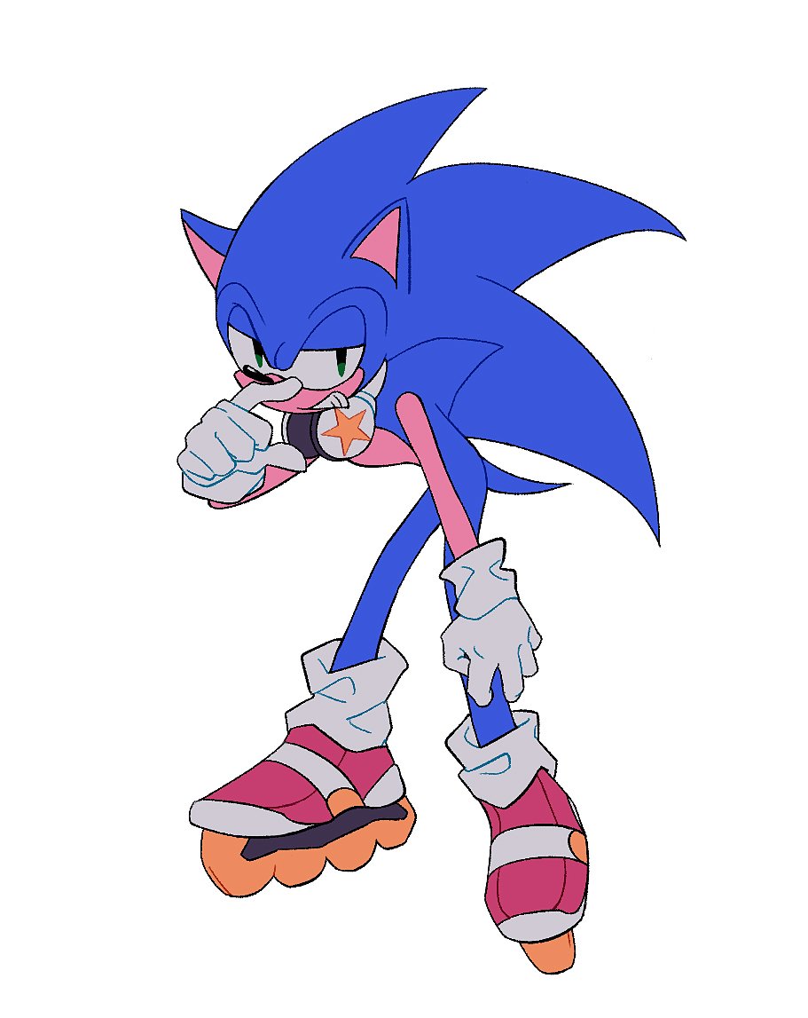 1boy animal_ears animal_nose full_body furry furry_male gloves half-closed_eyes hand_on_own_leg headphones headphones_around_neck inline_skates male_focus mo0n_friend red_shoes roller_skates rubbing_nose shoes simple_background skates solo sonic_(series) sonic_the_hedgehog standing tail white_background white_gloves