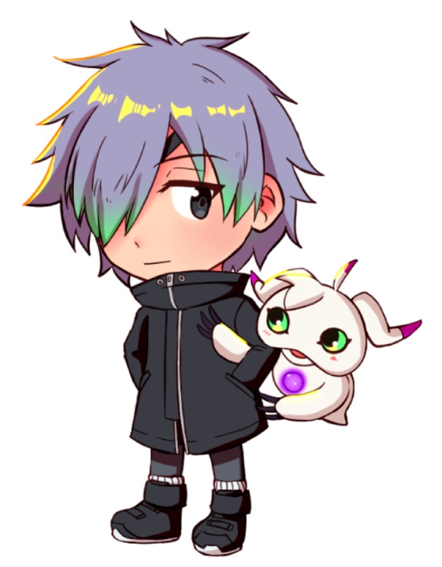 coat digicore digimon digimon_(creature) digimon_adventure_02:_the_beginning floating green_eyes owada_rui ukkomon