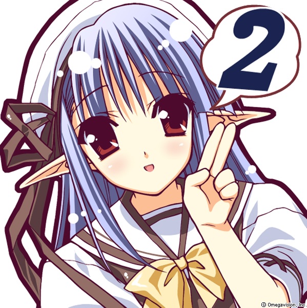 00s 1girl blue_hair blush female_focus finger_counting long_hair nerine official_art pointy_ears red_eyes school_uniform serafuku shuffle! solo suzuhira_hiro upper_body white_background
