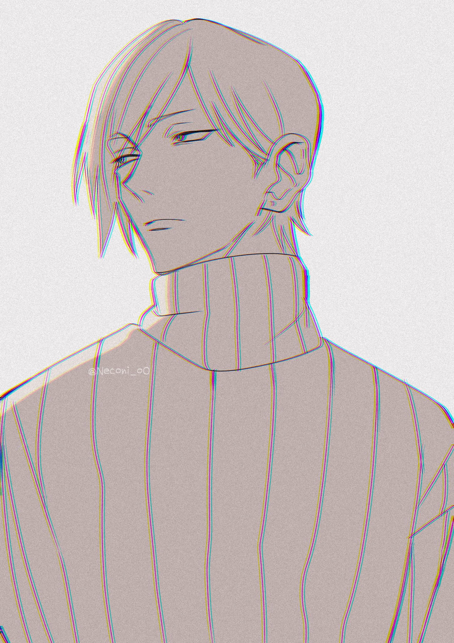 1boy aged_down expressionless high_collar highres jujutsu_kaisen lips male_focus nanami_kento nekonii ribbed_sweater short_hair solo sweater upper_body