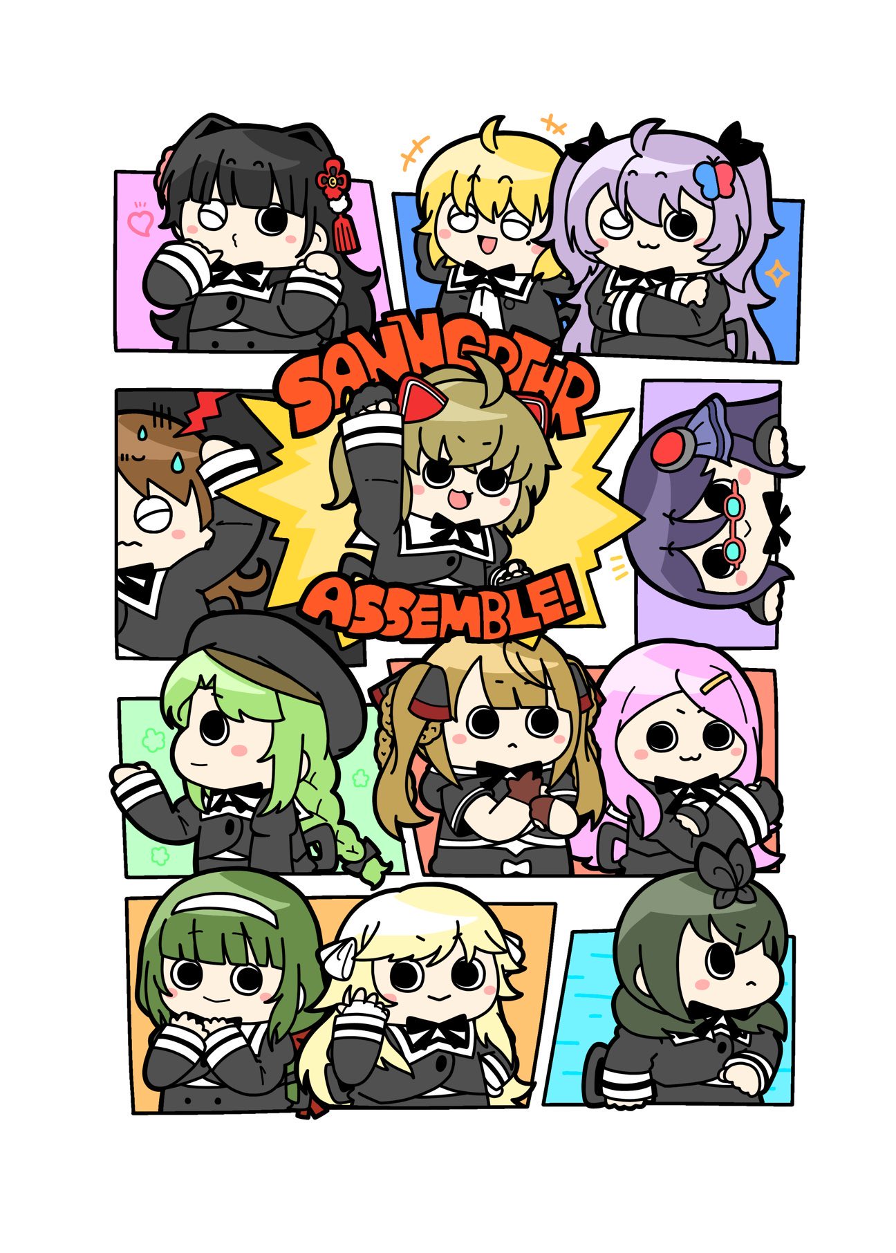 +++ 6+girls :> :< :3 :d ;) ahoge animal_ears arm_at_side arm_up assault_lily beret black_bow black_gloves black_hair black_headwear black_ribbon blonde_hair blue_background blue_ribbon blunt_bangs blush bow braid braided_ponytail brown_gloves brown_hair butterfly_hair_ornament buttons cat_ears chibi clenched_hand closed_eyes commentary_request cropped_jacket crossed_arms crossed_bangs fake_animal_ears finger_to_mouth fingerless_gloves flower flower_knot gem gem_hair_ornament glasses gloves green_background green_hair hair_between_eyes hair_bow hair_flower hair_ornament hair_ribbon hairband hairclip hand_on_own_head hand_up hands_up hasebe_touka hat heart high-waist_skirt highres imagawa_homare imai_seira izue_shinobu juliet_sleeves kiko_totori kondou_misaka konpeitoull_(c12h22o11_tr_6) kurokawa_nadi_hanna long_hair long_sleeves looking_ahead looking_at_another looking_at_viewer looking_to_the_side looking_up low_ponytail low_twintails luise_ingels mashima_moyu mole mole_under_eye multiple_girls murakami_tokiwa neck_ribbon notice_lines one_eye_closed open_mouth orange_background outstretched_arm parted_bangs pink_background pink_flower pink_hair ponytail profile puckered_lips puffy_sleeves purple_background purple_hair red-framed_eyewear red_background red_gem ribbon school_uniform seike_tomoyo short_hair short_twintails side-by-side sidelocks simple_background single_braid skirt smile solid_circle_eyes sparkle sweatdrop tassel tassel_hair_ornament twin_braids twintails two_side_up underbust upper_body v-shaped_eyebrows wavy_mouth white_footwear white_hairband white_ribbon yamanashi_hibari yellow_background yurigaoka_girls_academy_school_uniform