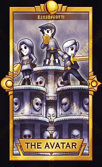 1girl 2boys arm_cannon belt belt_buckle black_border boots border boxing_gloves buckle card_(medium) clenched_hands closed_mouth cloud cloudy_sky commentary covering_own_mouth crescent english_commentary english_text eyelashes gloves hand_on_own_hip holding holding_sword holding_weapon knee_pads limited_palette long_hair long_sleeves mii_(nintendo) mii_brawler mii_brawler_(smash_4) mii_gunner mii_gunner_(smash_4) mii_swordfighter mii_swordfighter_(smash_4) multiple_boys nintendo pants podium quas-quas shirt short_hair sky smash_ball smile solid_eyes spiked_hair star_(symbol) super_smash_bros. sword tarot tarot_(medium) weapon
