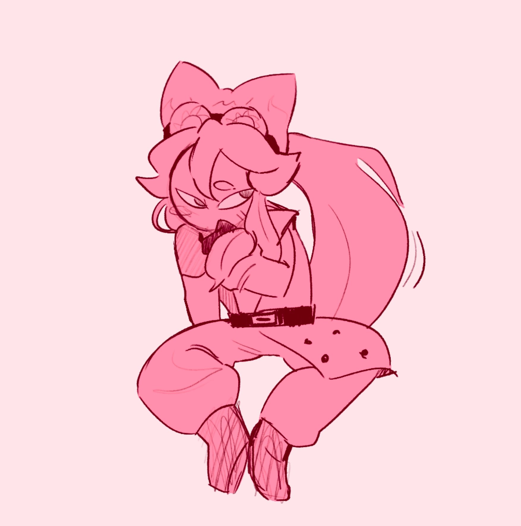 1boy animal_ears baggy_pants belt belt_buckle blush_stickers boots buckle cookie_run doodle facial_mark fox_boy fox_ears full_body fur_hat goggles goggles_on_head hair_between_eyes hat highres long_hair looking_to_the_side male_focus no_mouth pants strawberry_cream_cookie whisker_markings