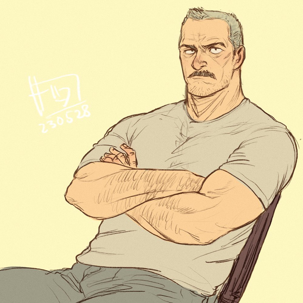 &{ID:9372309 CreatedAt:Mon Dec 18 17:30:37 -0600 2023 Score:1 Width:1000 Height:1000 MD5:d1d5db1bd7e2221aa4691aeda8d6b4fe Directory:d1/d5 Image:d1d5db1bd7e2221aa4691aeda8d6b4fe.jpg Rating:general Source:https://twitter.com/o_natsuo88/status/1662834735310307328 Change:1705788607 Owner:danbooru CreatorID:6498 ParentID:0 Sample:0 PreviewHeight:350 PreviewWidth:350 Tags:1boy aaron_gruber_(o_natsuo88) bara beard_stubble black_eyes chair cowboy_shot crossed_arms denim facial_hair facial_scar grey_hair grey_shirt jeans male_focus mature_male muscular muscular_male mustache o_natsuo88 old old_man original pants receding_hairline scar scar_on_cheek scar_on_face scowl shirt short_hair simple_background sitting solo stubble thick_eyebrows thick_mustache wrinkled_skin yellow_background Title: HasNotes:false HasComments:false FileURL:https://img2.gelbooru.com/images/d1/d5/d1d5db1bd7e2221aa4691aeda8d6b4fe.jpg PreviewURL:https://gelbooru.com/thumbnails/d1/d5/thumbnail_d1d5db1bd7e2221aa4691aeda8d6b4fe.jpg SampleURL: SampleHeight:0 SampleWidth:0 Status:active PostLocked:0 HasChildren:false IsVideo:false DisplayDate:18.12.2023 17:30}
