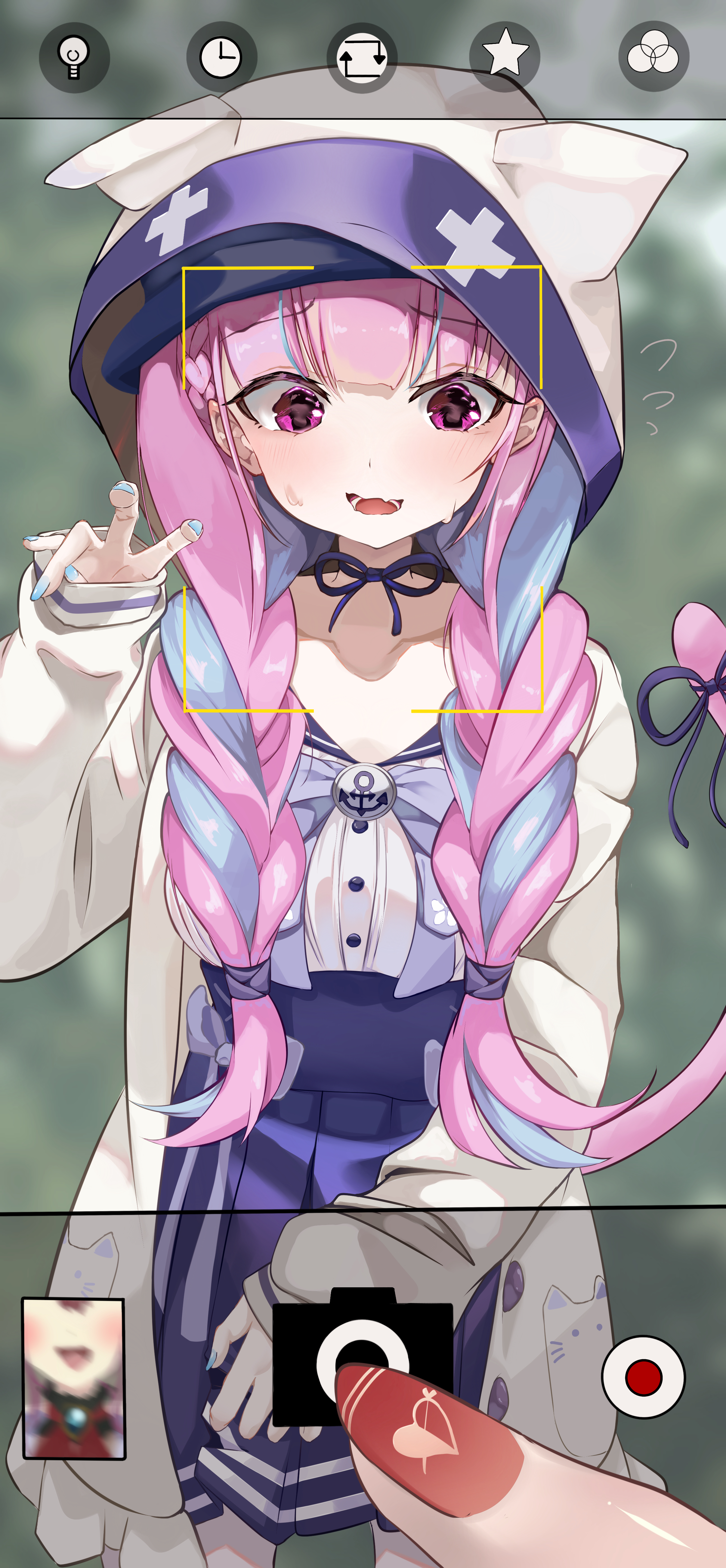 2girls absurdres animal_hood bent_v blue_bow blue_bowtie blue_hair blue_nails blue_sky blurry blurry_background bow bowtie braid cat_tail choker fake_phone_screenshot fake_screenshot female_pov flying_sweatdrops highres hololive hood hooded_jacket houshou_marine jacket long_hair long_sleeves minato_aqua minato_aqua_(sailor) multicolored_hair multiple_girls nail_art nekoi_(nekoi_0116) open_clothes open_jacket open_mouth pink_hair pov purple_eyes red_nails ribbon ribbon_choker shirt sky sleeves_past_wrists tail tail_ornament tail_ribbon twin_braids two-tone_hair v virtual_youtuber white_shirt