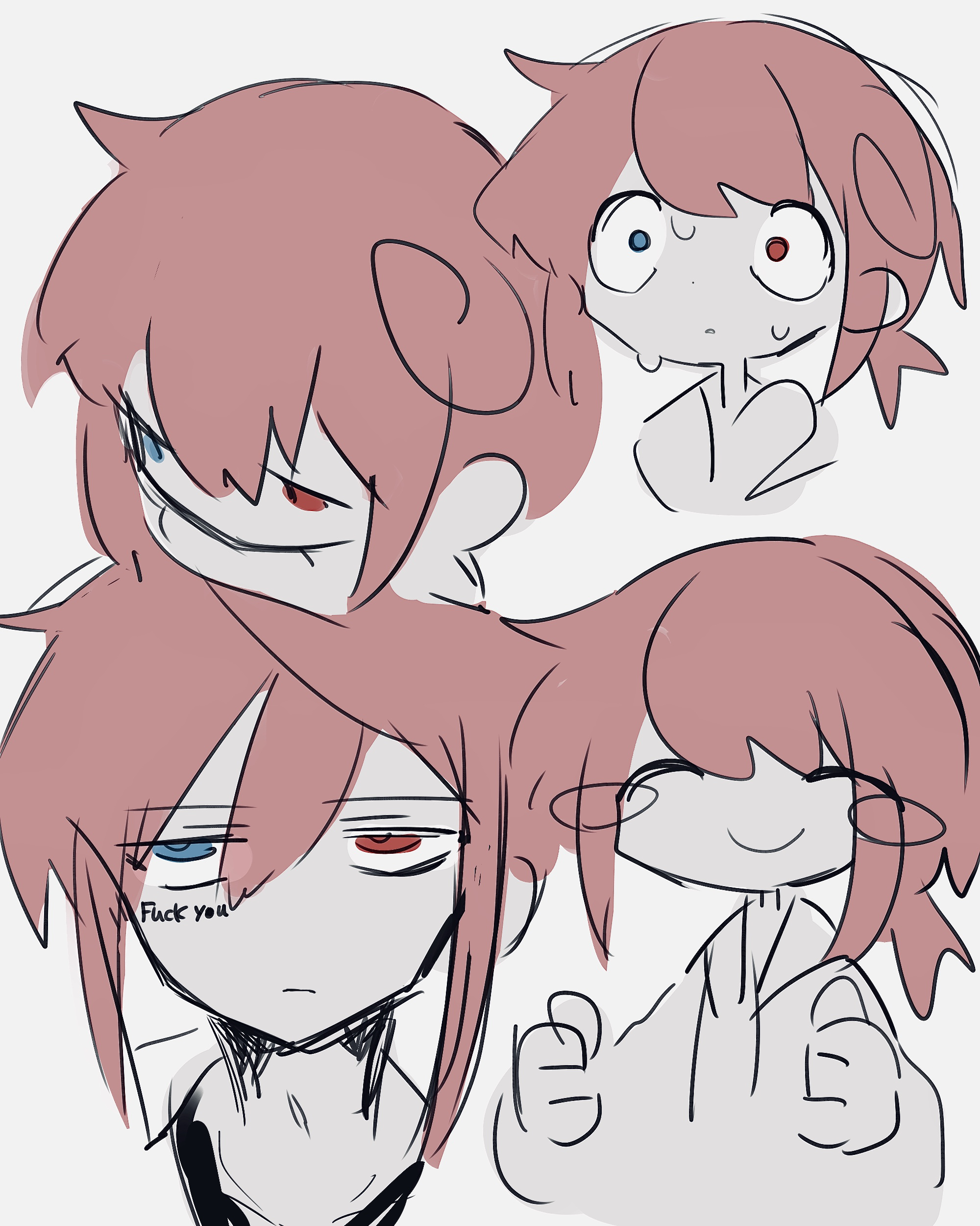 1boy absurdres black_shirt closed_eyes collarbone doodle english_text happy highres hood hood_down hoodie jitome male_focus multiple_views nervous nervous_sweating original pink_hair ponytail raito-kun_(uenomigi) shirt short_hair short_ponytail shrunken_irises sidelocks simple_background sketch smile sweat thumbs_up uenomigi upper_body white_background white_hoodie wide-eyed