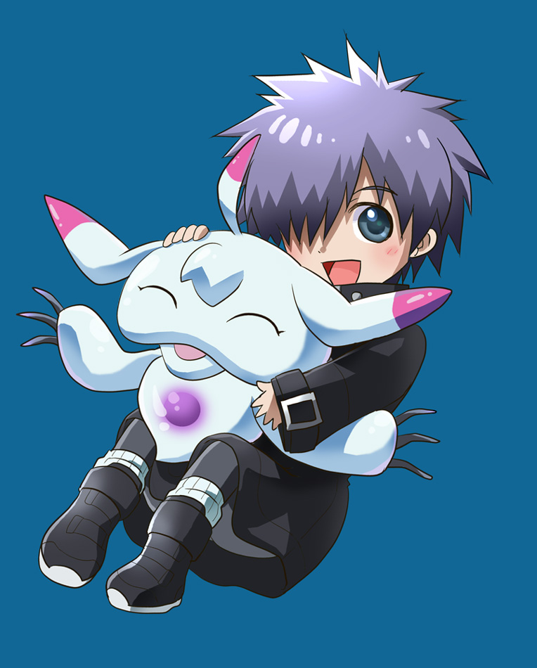 1boy closed_eyes digicore digimon digimon_(creature) happy owada_rui smile ukkomon