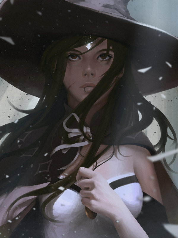 cape fragments hat hollizho light long_hair magic original ribbon wind witch witch_hat