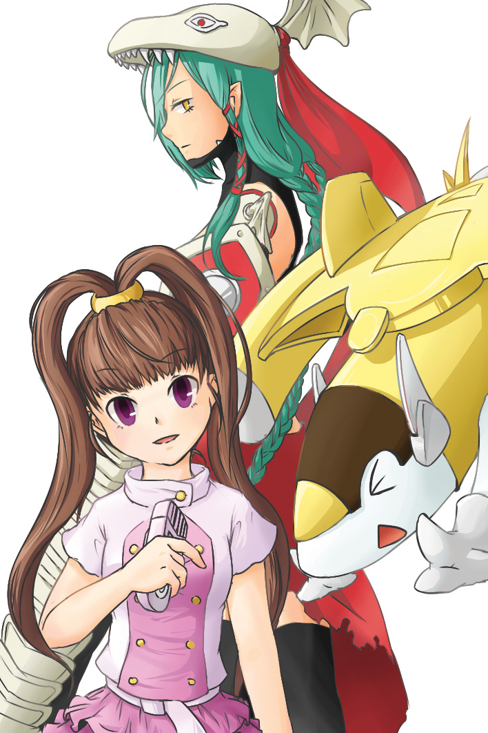 amano_nene_(digimon_xros_wars) armor braid breasts digimon digimon_(creature) hair_ornament hairclip helmet long_hair mervamon ponytail small_breasts sparrowmon split_ponytail