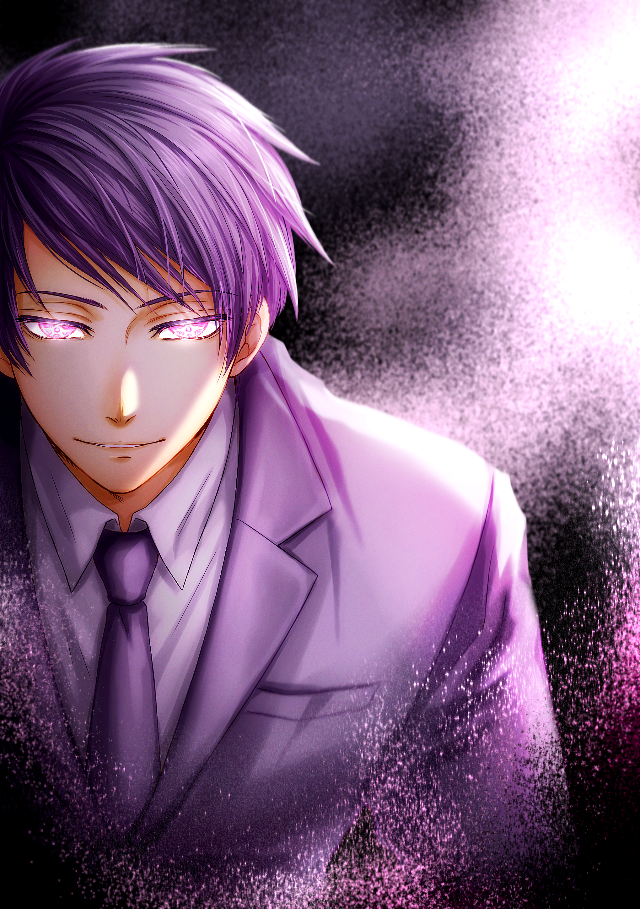 1boy absurdres black_hair black_necktie collared_shirt formal_clothes highres nanashino2600 necktie pink_eyes shirt solo suit symbol-shaped_pupils yozakura-san_chi_no_daisakusen yozakura_kyouichirou