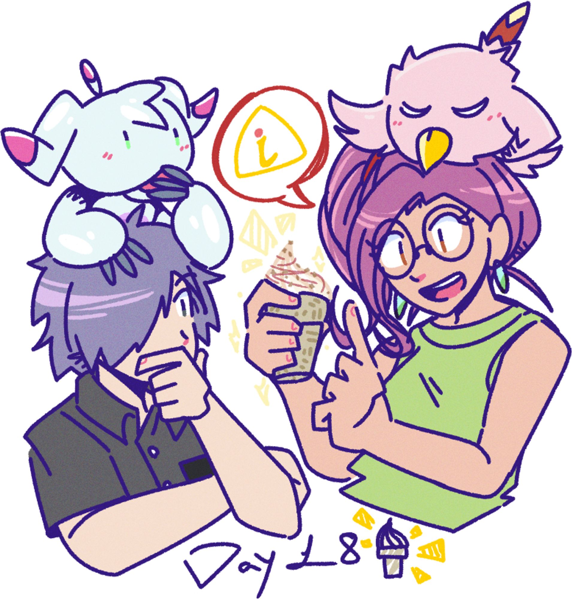 digimon digimon_(creature) digimon_adventure_02 digimon_adventure_02:_the_beginning food happy highres ice_cream inoue_miyako long_hair looking_at_another owada_rui poromon smile ukkomon