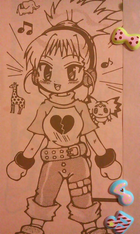 belt broken_heart culumon digimon hair_ornament hairpin heaphones heart long_hair makino_ruki ponytail