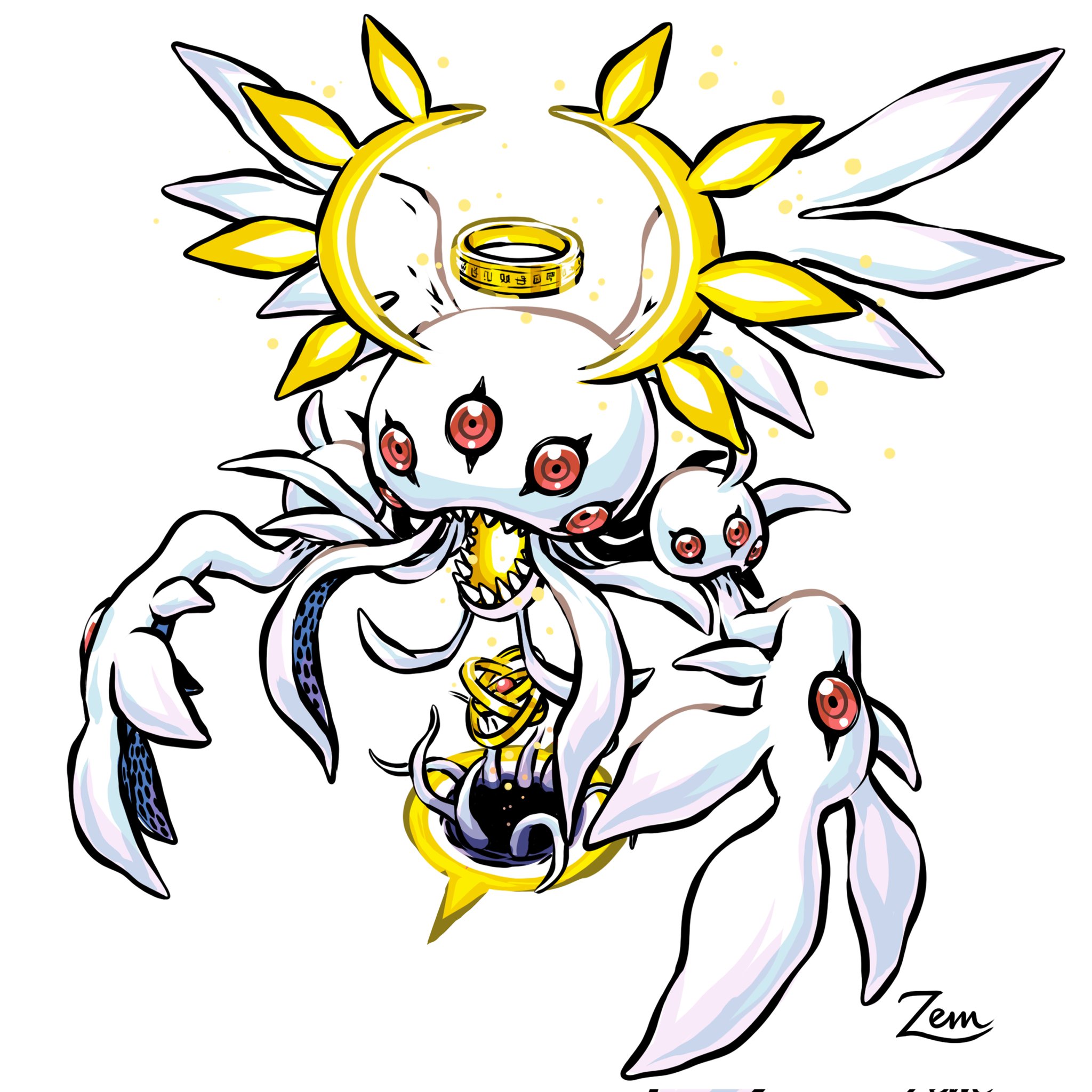 digimon digimon_(creature) floating highres holy_ring monster original red_eyes simple_background solo ukkomon white_background
