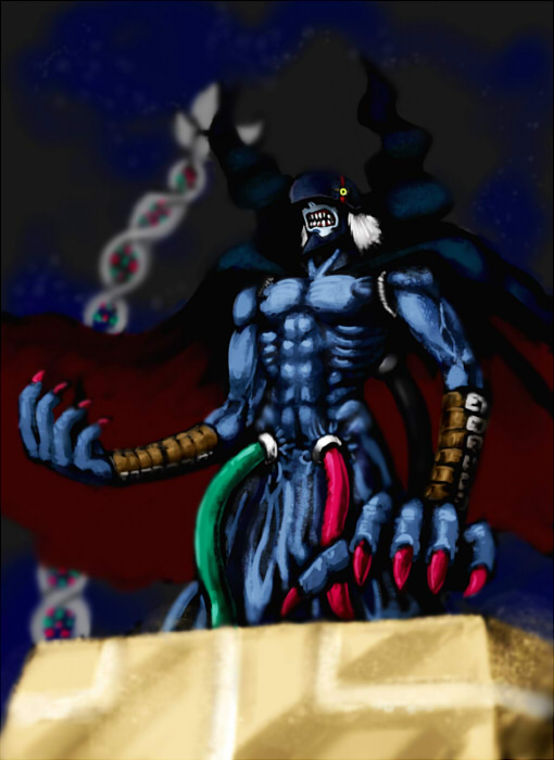 1boy apocalymon belt cable claws digimon digimon_(creature) male_focus muscular muscular_male solo