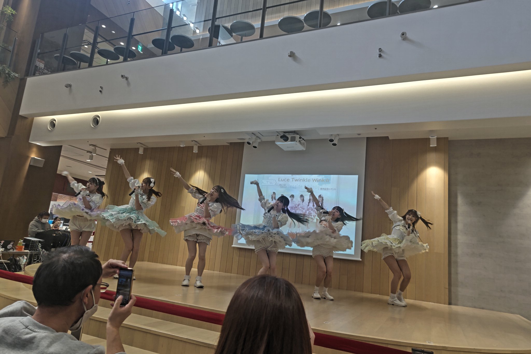 6+girls bloomers higaki_kaho highres itayama_saori koizumi_kanon luce_twinkle_wink microphone multiple_girls nagumo_mei sakimoto_mio underwear usami_yukino white_bloomers