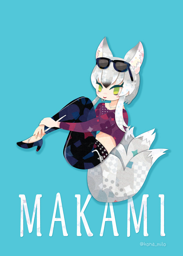 1girl animal_ears blue_background extra_ears kemono_friends kikuchi_milo looking_at_viewer makami_(kemono_friends) simple_background solo sunglasses tail