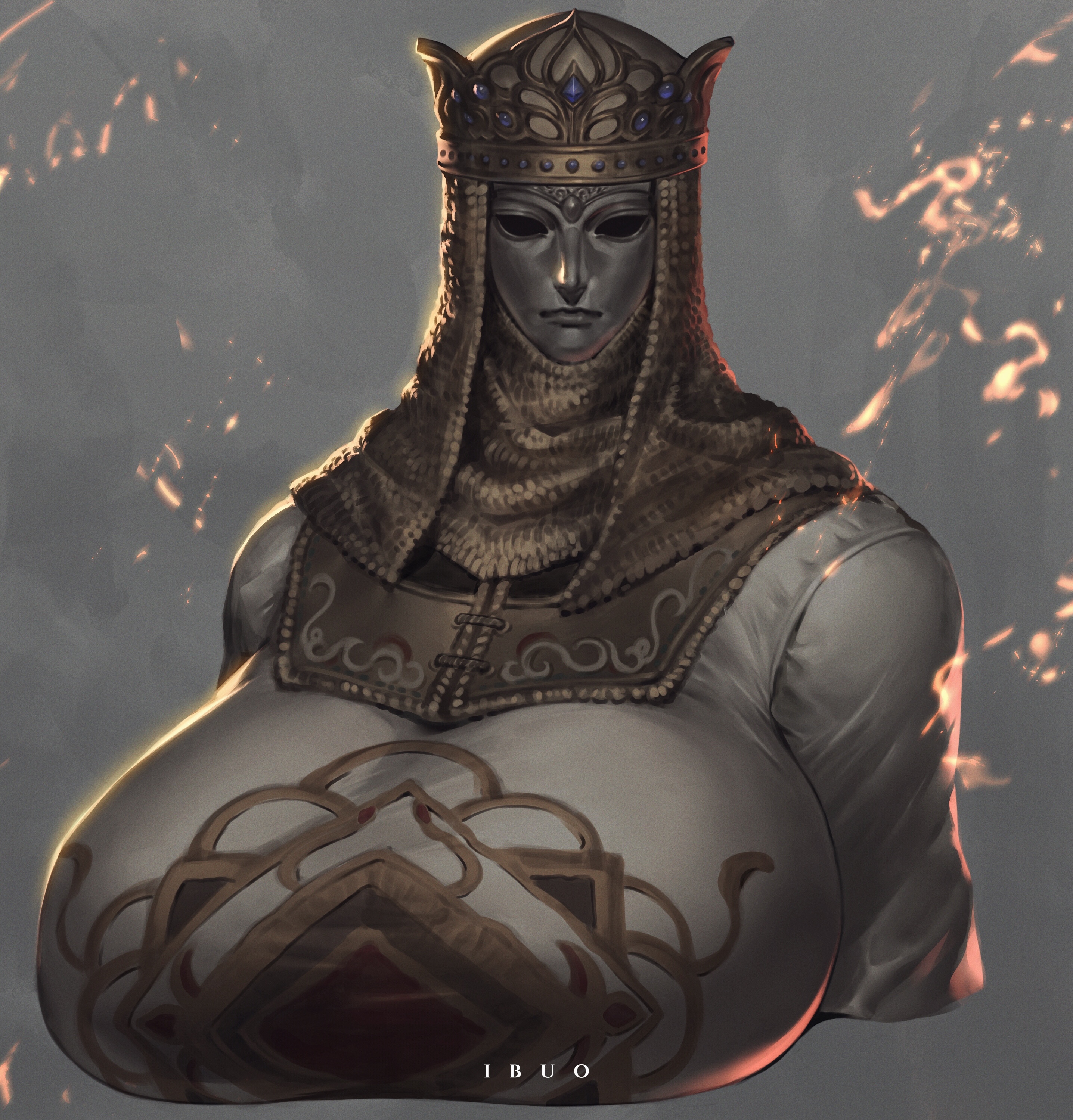1girl absurdres alternate_breast_size_(larger) armor arms_at_sides breasts chainmail crown dress elden_ring highres huge_breasts ibuo_(ibukht1015) jewelry lady_tanith_(elden_ring) looking_at_viewer mask solo upper_body veil zipper
