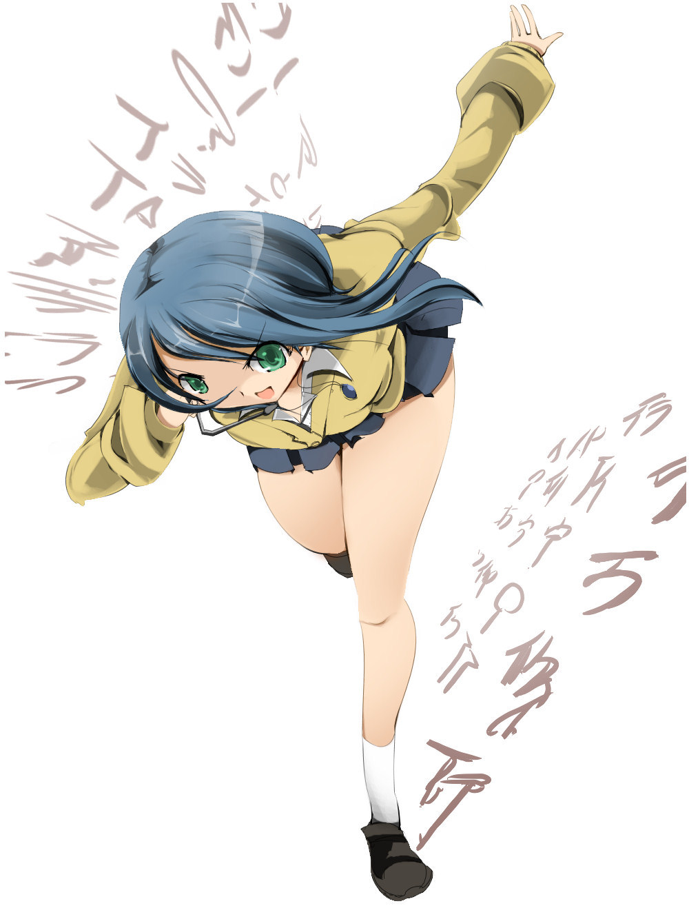 1girl blue_hair female_focus green_eyes highres madoka_(onmyou_taisenki) onmyou_taisenki short_hair skirt solo