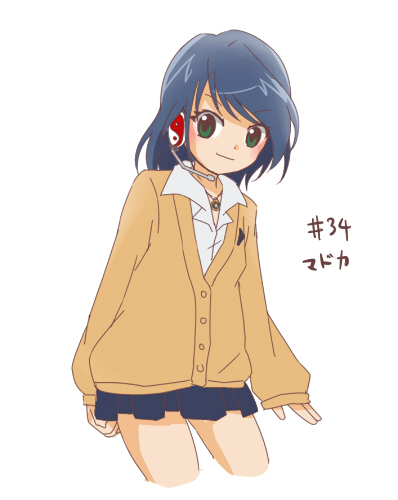 blue_hair breasts green_eyes madoka_(onmyou_taisenki) onmyou_taisenki short_hair skirt small_breasts