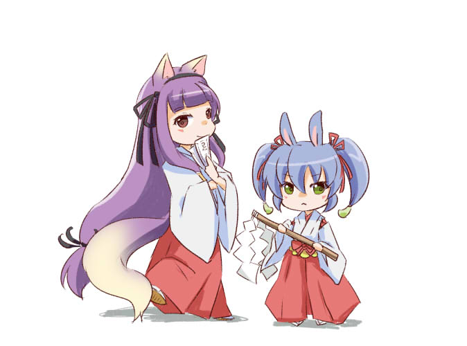 2girls hair_ornament hairpin izuna_(onmyou_taisenki) japanese_clothes long_hair magatama miko multiple_girls nazuna_(onmyou_taisenki) onmyou_taisenki twintails