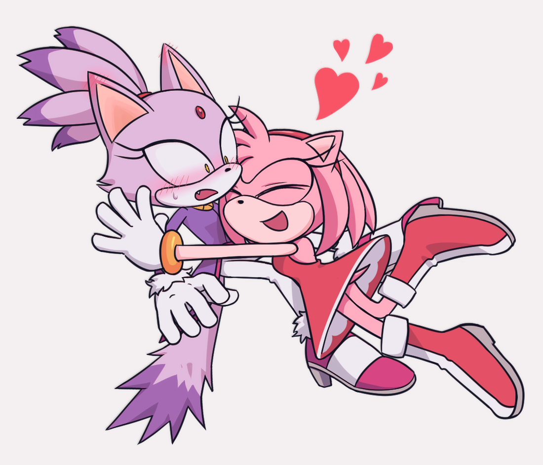 2girls amy_rose animal_ears blaze_the_cat blush boots cat_ears cat_girl cat_tail closed_eyes dress forehead_jewel furry furry_female gloves heart hedgehog_girl hug multiple_girls pants pink_boots pink_fur ponytail purple_fur red_dress red_footwear rodka_sth simple_background sonic_(series) tail white_gloves white_pants yellow_eyes yuri