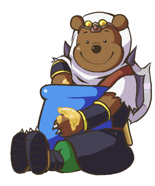 1boy axe beak fusion honey male_focus onmyou_taisenki pooh shikigami_(onmyou_taisenki) solo tsubaki_no_gorouza winnie_the_pooh