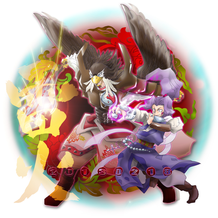 armor beak belt feathers ikazuchi_no_takamaru long_hair mask onmyou_taisenki ranmaru_(onmyou_taisenki) shikigami_(onmyou_taisenki) wings