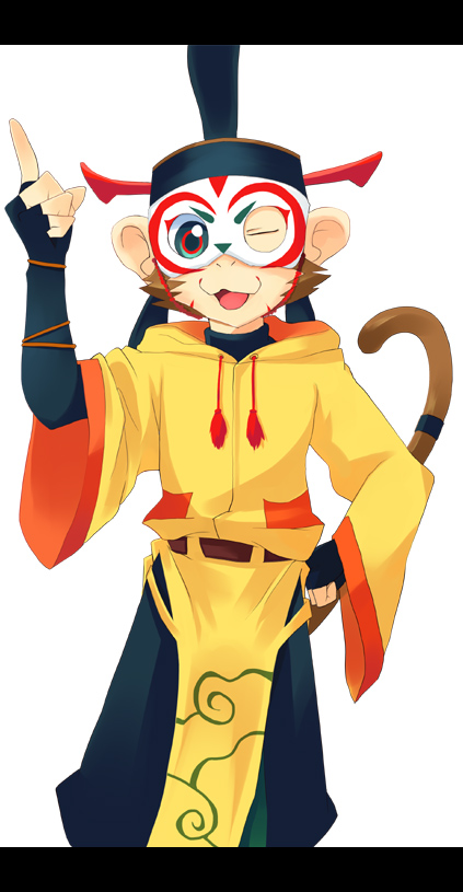 belt brown_fur brown_hair enoki_no_sanemaro furry hat monkey_boy onmyou_taisenki shikigami_(onmyou_taisenki) smile tail