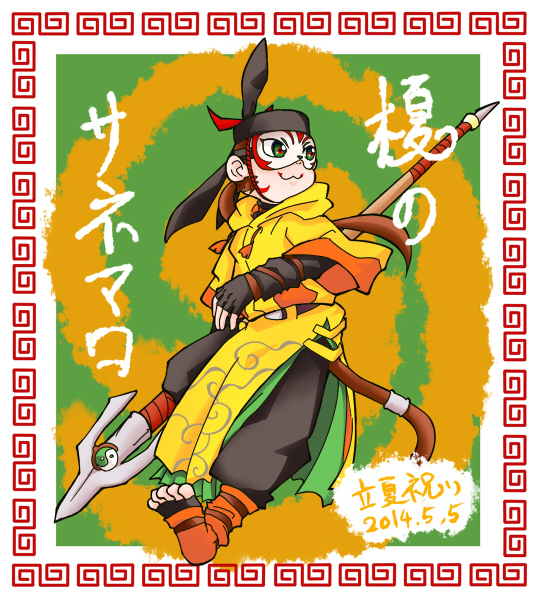 belt brown_fur brown_hair enoki_no_sanemaro furry hat monkey_boy onmyou_taisenki shikigami_(onmyou_taisenki) smile tail