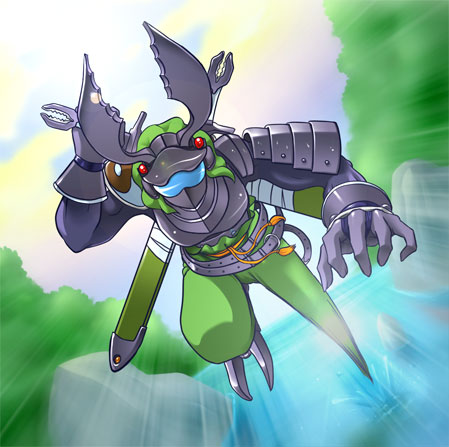 1boy armor exoskeleton horns kurogane_no_fuji male_focus onmyou_taisenki shikigami_(onmyou_taisenki) solo sword weapon