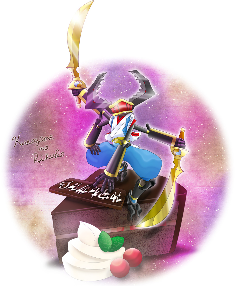 1boy arthropod_boy cake food kurogane_no_rikudou male_focus monster_boy onmyou_taisenki shikigami_(onmyou_taisenki) solo