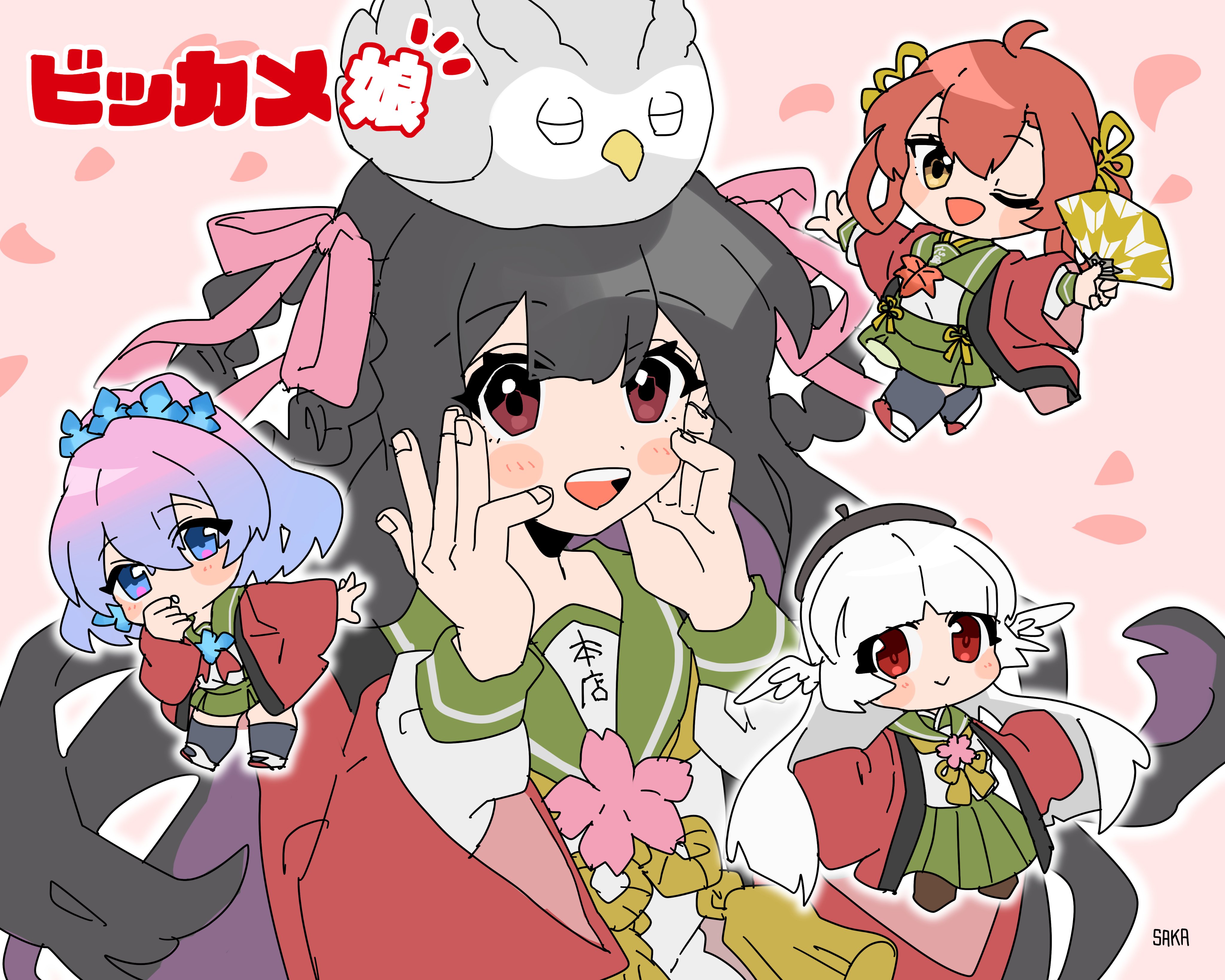 4girls absurdres black_hair green_skirt highres hiroshima-tan honten-tan multiple_girls sagami-tan skirt white_hair yurakucho-tan