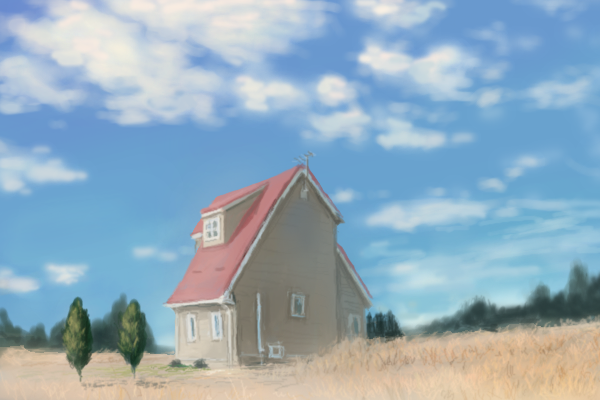 blue_sky bush cloud day drawfag field house no_humans oekaki original outdoors sky tree wheat_field window