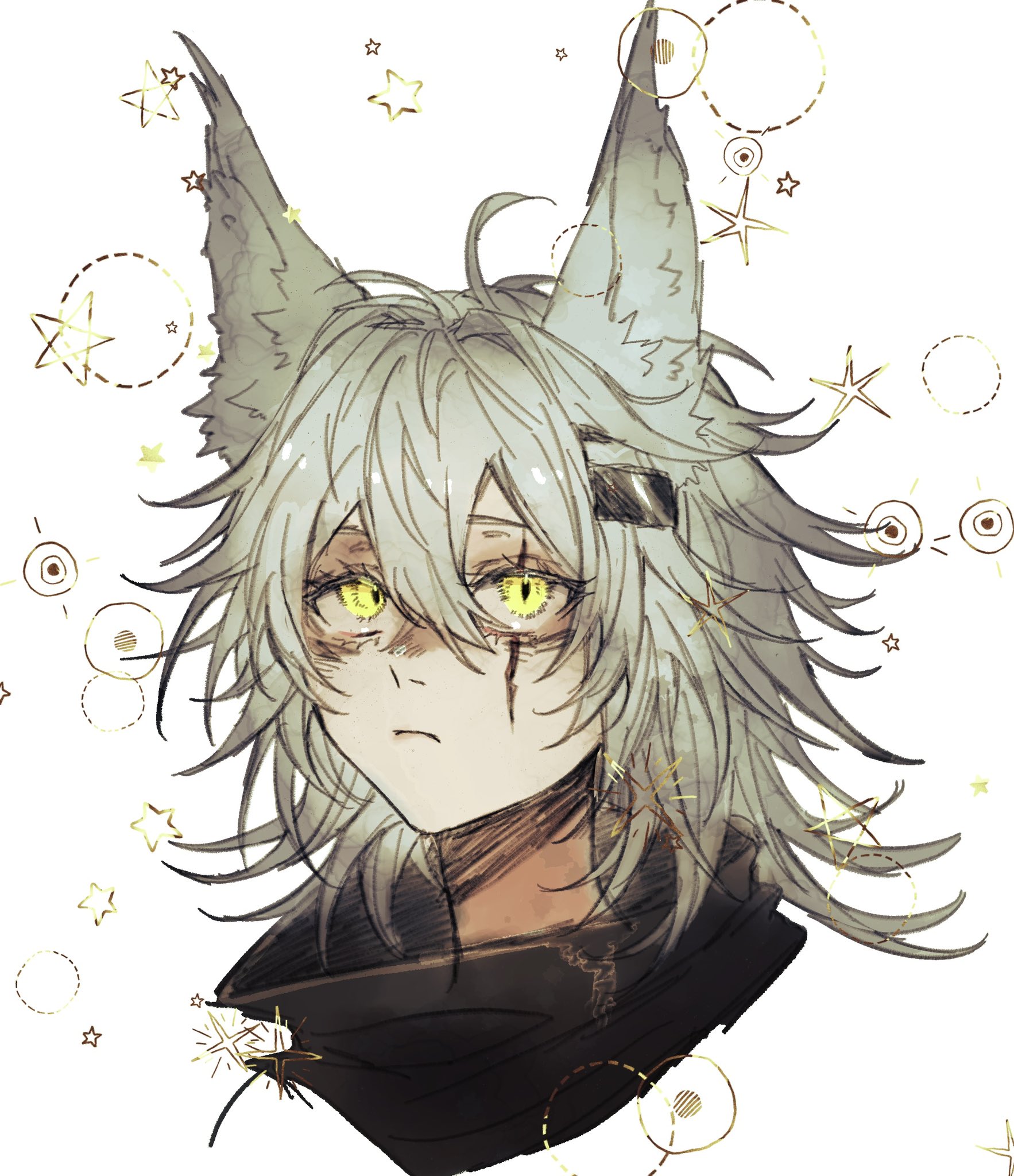 1girl animal_ears arknights green_eyes grey_hair hair_ornament hairclip highres lappland_(arknights) m10_(lycos_zzz) messy_hair scar wolf_ears wolf_girl