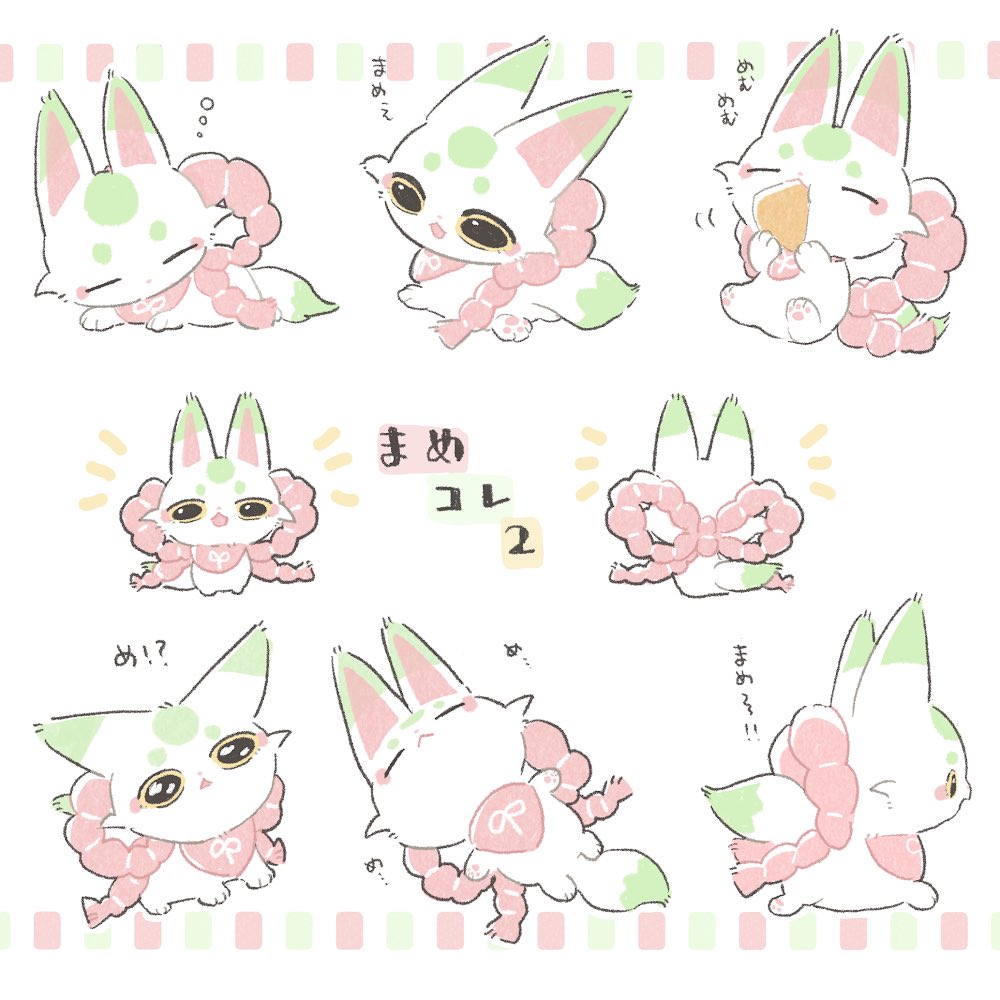 65tan_tl :< ^_^ aburaage animal animal_focus closed_eyes clothed_animal colored_sclera eating facing_away facing_to_the_side food fox looking_at_viewer lying mamenosuke_(touken_ranbu) mouth_hold multiple_views no_humans on_stomach profile red_scarf rope scarf shimenawa touken_ranbu triangle_mouth walking white_background yellow_sclera
