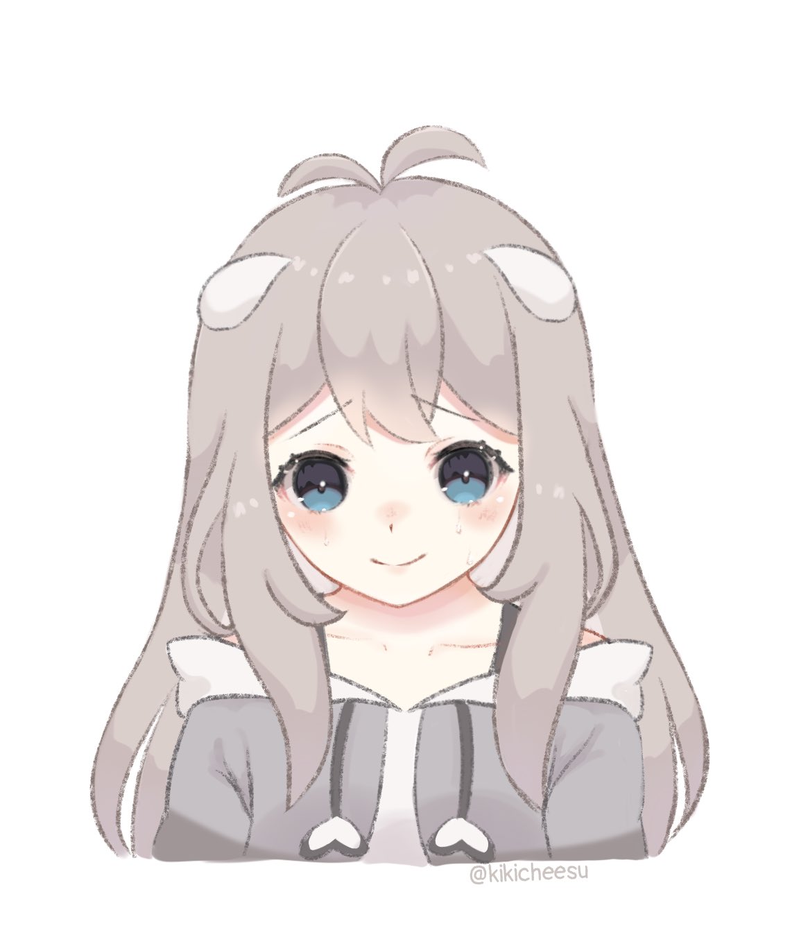 1girl antenna_hair blue_eyes colored_inner_hair crossed_bangs grey_hair grey_hoodie highres hood hoodie indie_virtual_youtuber kiki_cheesu_(artist) long_hair looking_at_viewer multicolored_hair portrait shachi_(vtuber) smile very_long_hair virtual_youtuber