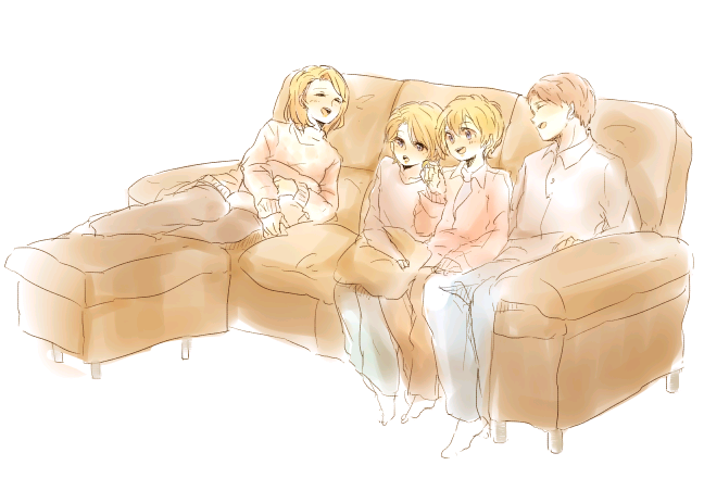 blush brothers closed_eyes digimon family father_and_child father_and_son ishida_hiroaki ishida_yamato mother_and_child mother_and_son parent_and_child siblings smile takaishi_natsuko takaishi_takeru