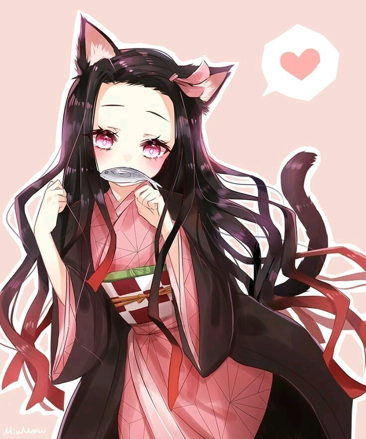 animal_ears cat cat_ears cat_tail fish heart kamado_nezuko kimetsu_no_yaiba love_plus tail