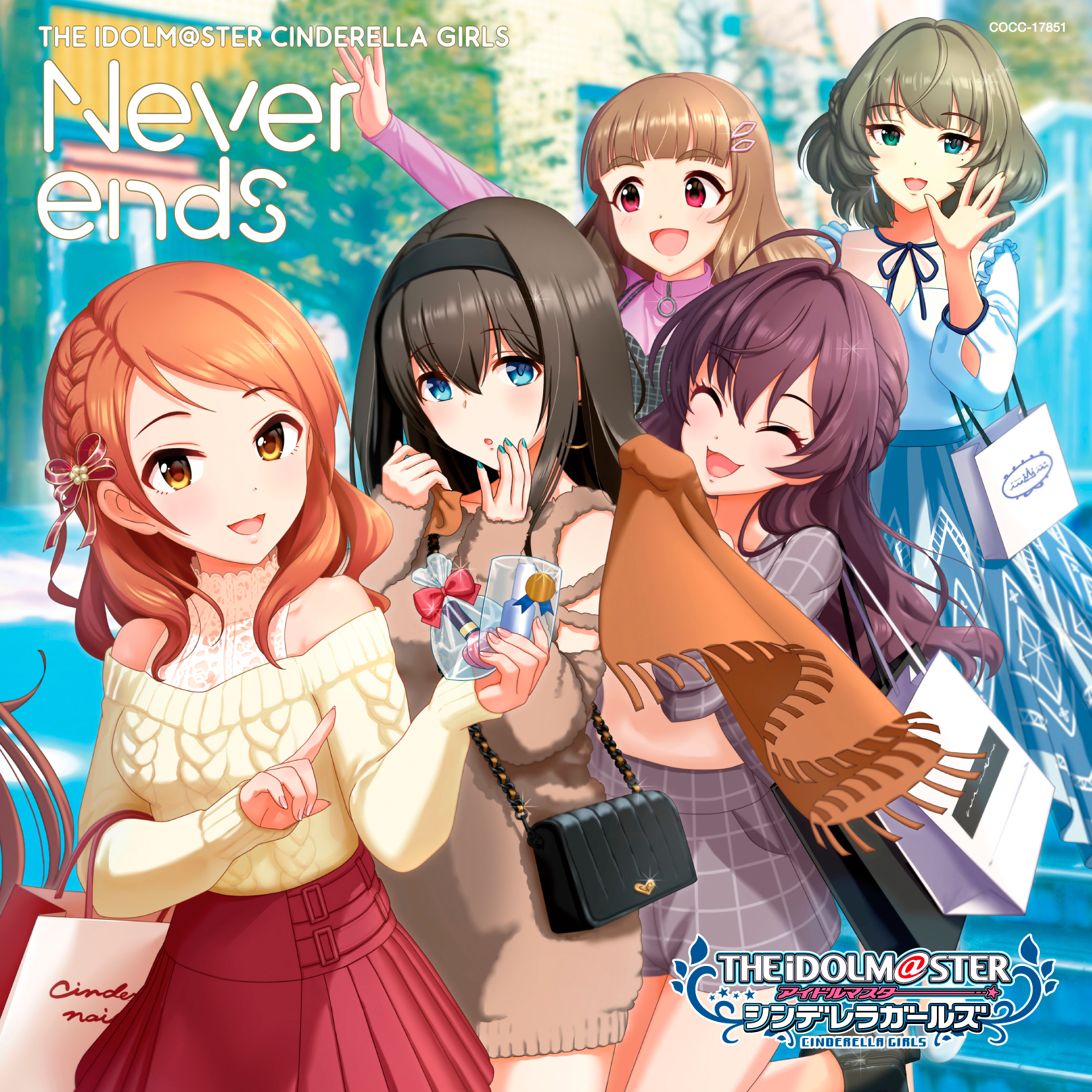 album_cover bag blue_eyes brown_hair closed_eyes cover green_eyes hairband handbag heterochromia highres hojo_karen ichinose_shiki idolmaster idolmaster_cinderella_girls kamiya_nao official_art orange_eyes orange_hair sagisawa_fumika skirt takagaki_kaede thick_eyebrows
