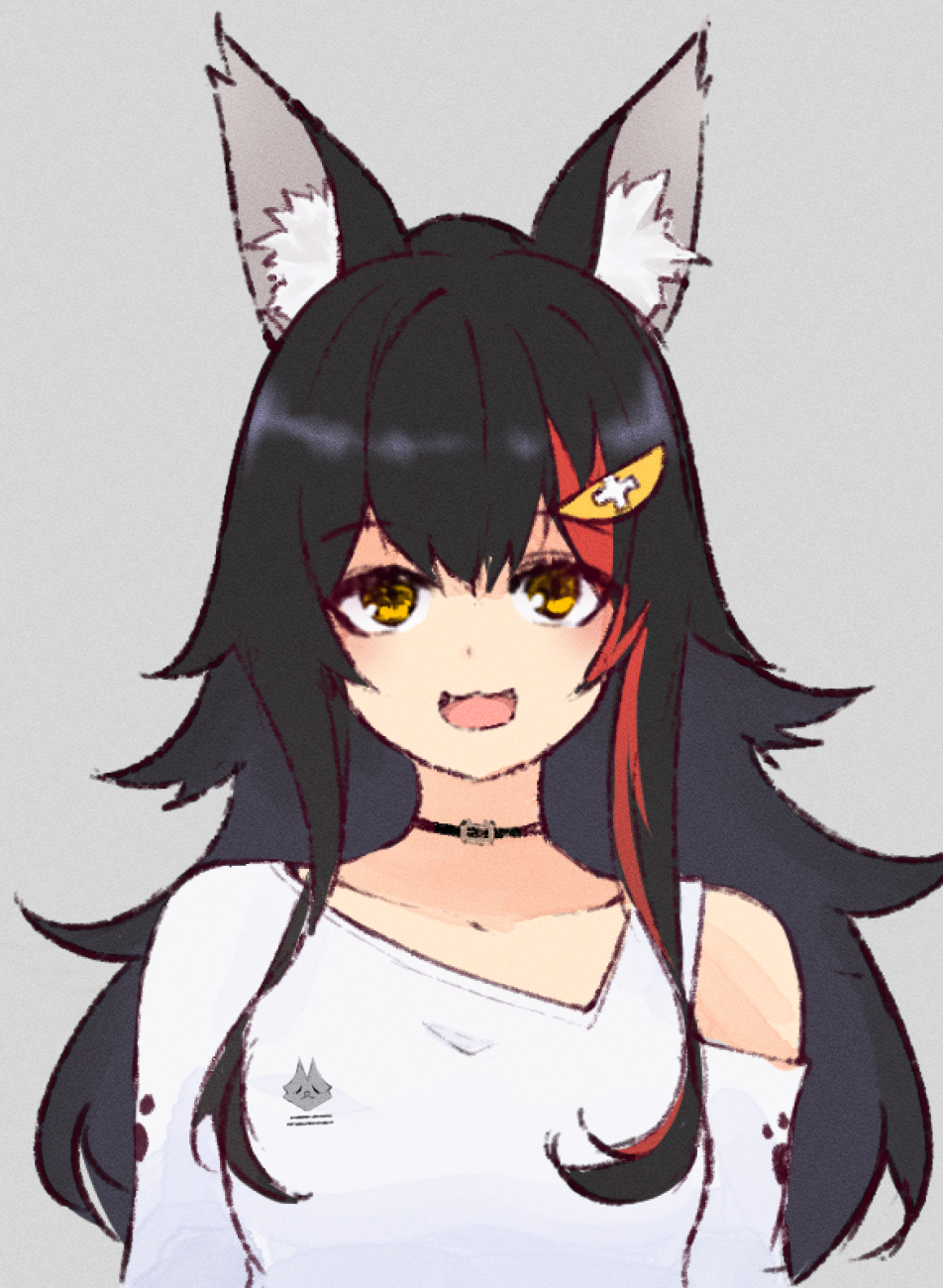 1girl animal_ears black_hair grey_background highres hololive nkmmktwt ookami_mio virtual_youtuber wolf_ears wolf_girl yellow_eyes