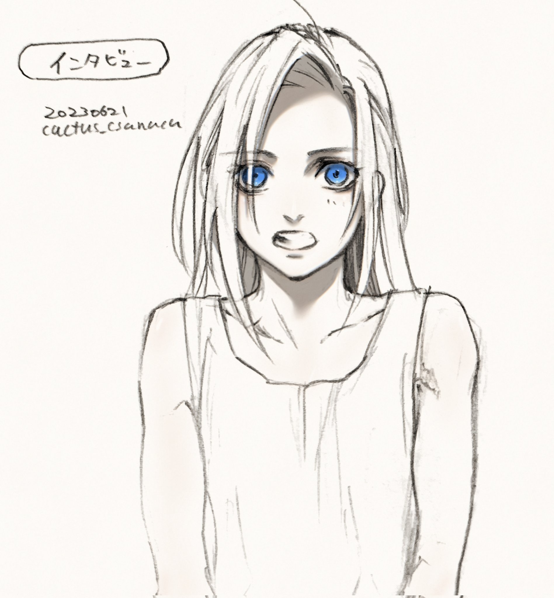 1boy arthur_beresford bare_shoulders blue_eyes child csanaca dated higeki_no_genkyou_tonaru_saikyou_gedou_last_boss_joou_wa_tami_no_tame_ni_tsukushimasu highres long_hair looking_at_viewer male_focus open_mouth simple_background sketch sleeveless solo spot_color tank_top twitter_username upper_body