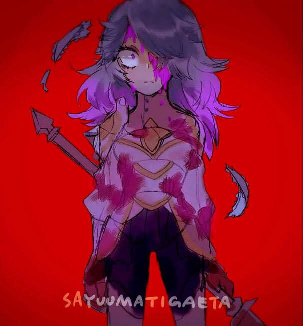 1girl alternate_hairstyle armor blue_hair fire_emblem fire_emblem_fates gradient_hair hair_down hair_over_one_eye holding holding_polearm holding_weapon makeup multicolored_hair nintendo peri_(fire_emblem) pink_hair polearm runny_makeup solo two-tone_hair twqk6 weapon