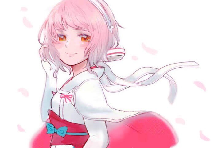 1girl falling_petals fire_emblem fire_emblem_fates hairband japanese_clothes light_smile looking_at_viewer nintendo petals pink_eyes pink_hair red_hair sakura_(fire_emblem) solo twqk6 white_hairband