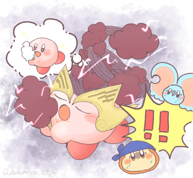 bandana_waddle_dee closed_eyes cloud copy_ability cotton_candy dreaming elfilin food holding holding_cotton_candy holding_food holding_ice_cream hosimaru_kirby ice_cream kirby kirby_(series) kirby_and_the_forgotten_land nintendo open_mouth sleeping storm_tornado_kirby tornado_kirby twitter_username