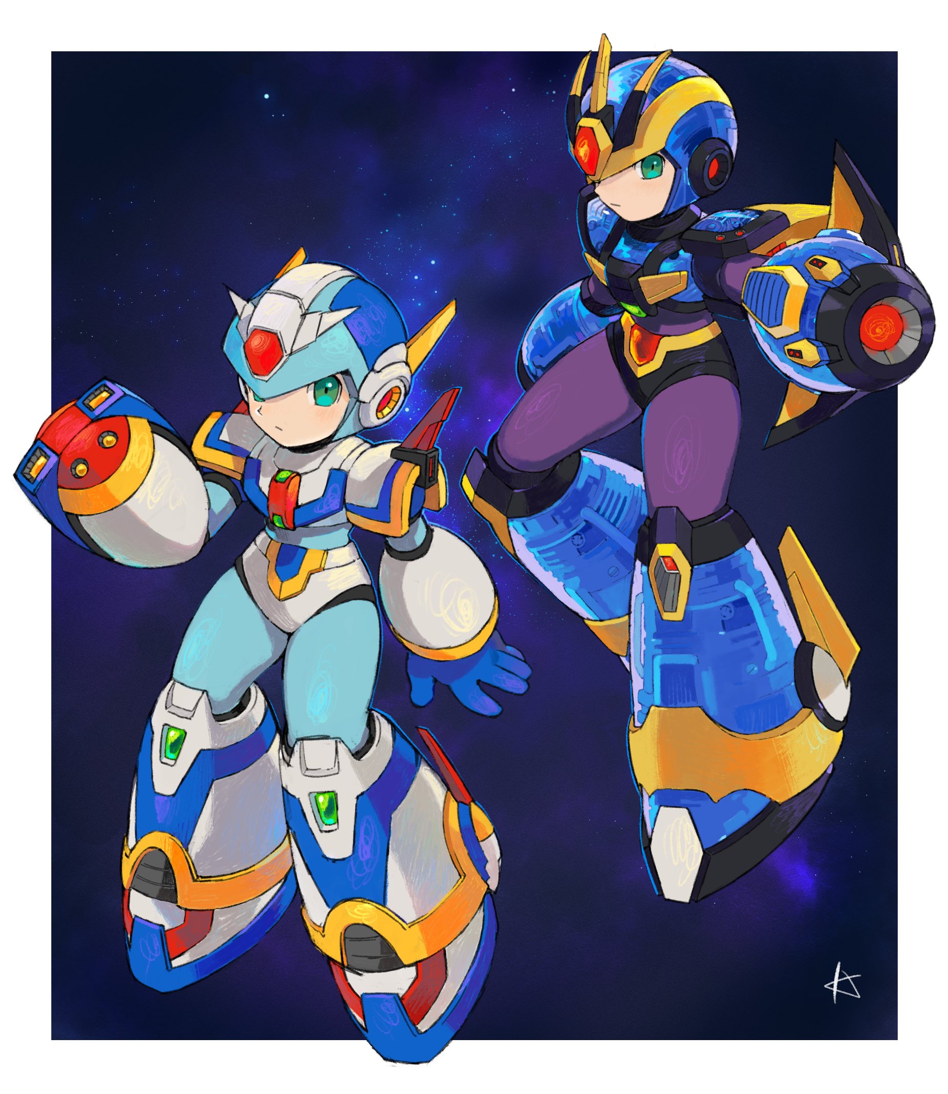1boy aiming arm_cannon armor boots forehead_jewel fourth_armor_x_(mega_man) green_eyes highres karen_(karenoni1031) mechanical_boots mega_man_(series) mega_man_x4 mega_man_x5 mega_man_x_(series) night shoulder_armor ultimate_armor_x_(mega_man) weapon x_(mega_man)